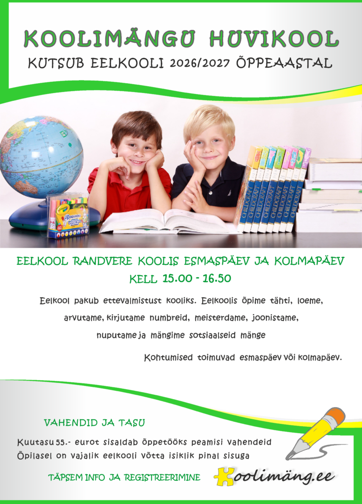 Randvere Kooli eelkooli gruppidesse registreerimine algab 1.04.2026